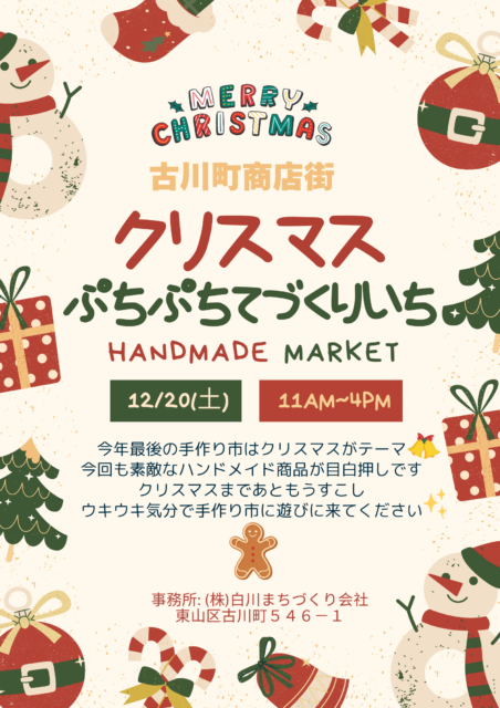 今年最後のぷちぷち手作り市が12月20日(土)に開催が決定いたしました!